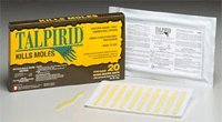 TALPIRID Mole Killer is a worm-shaped mole bait scientifically proven to kill moles in lawns and gardens. Moles usually die in their tunnels often within 12-24 hours of ingesting the TALPIRID bait. Special Features: